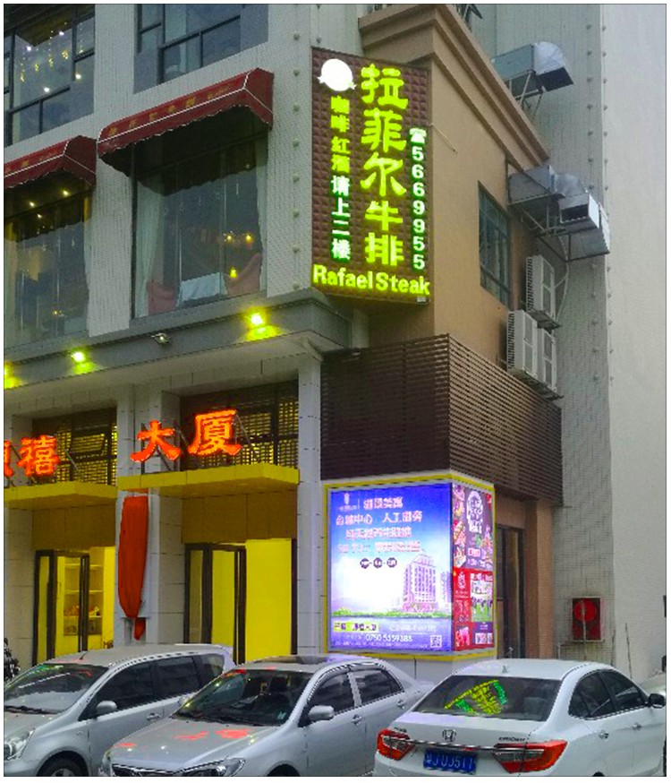 廣東江門某商場(chǎng)外墻轉(zhuǎn)角拉布燈箱解決方案