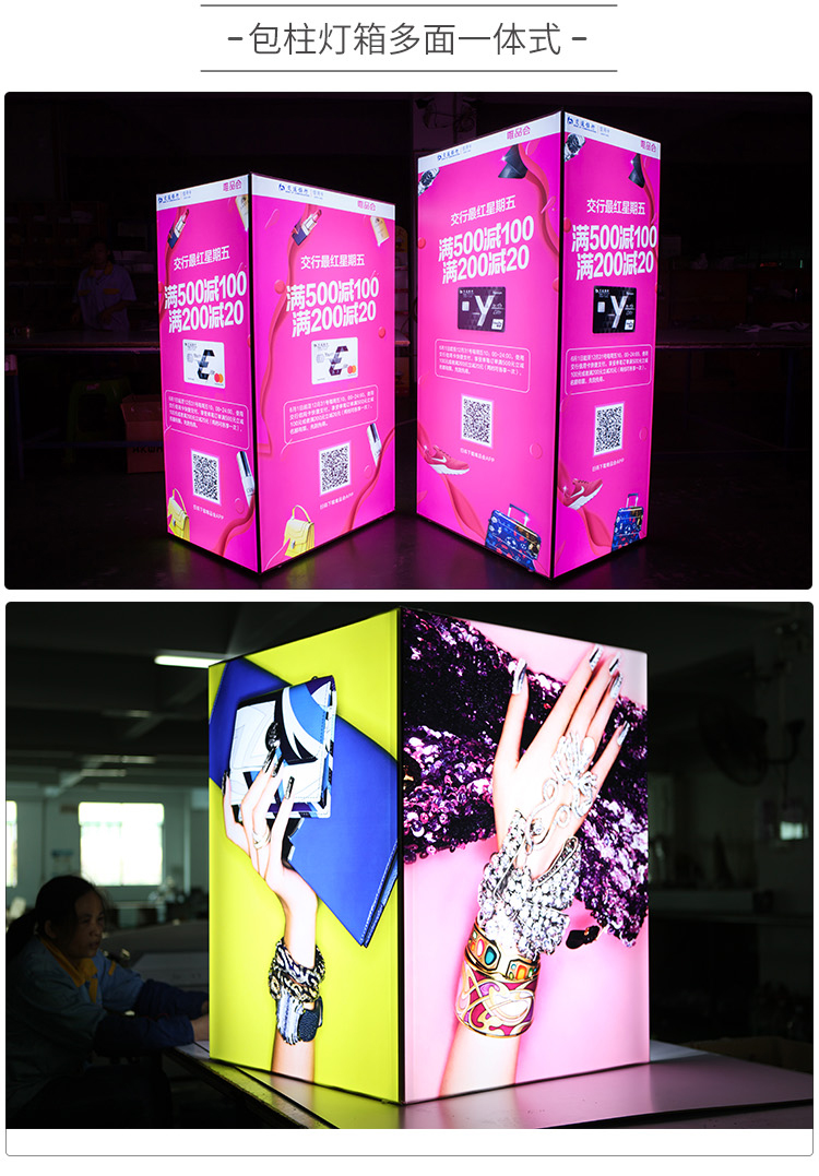 產(chǎn)品簡(jiǎn)介:匯百美包柱燈箱——突破單一的廣告宣傳,全方位四面展示廣告,充分利用空間,廣告效益擴(kuò)大化!...