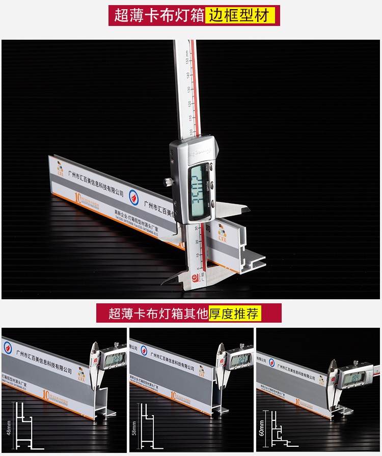 產(chǎn)品簡介:超薄卡布燈箱,燈箱型材兩用設(shè)計(jì),可選擇25mm或者35mm的超薄厚度,一般做不打燈畫框使用,也可安裝導(dǎo)光板使用,軟膜嵌入式換畫更方便,常用于掛墻式的廣告宣傳或裝潢裝飾。...