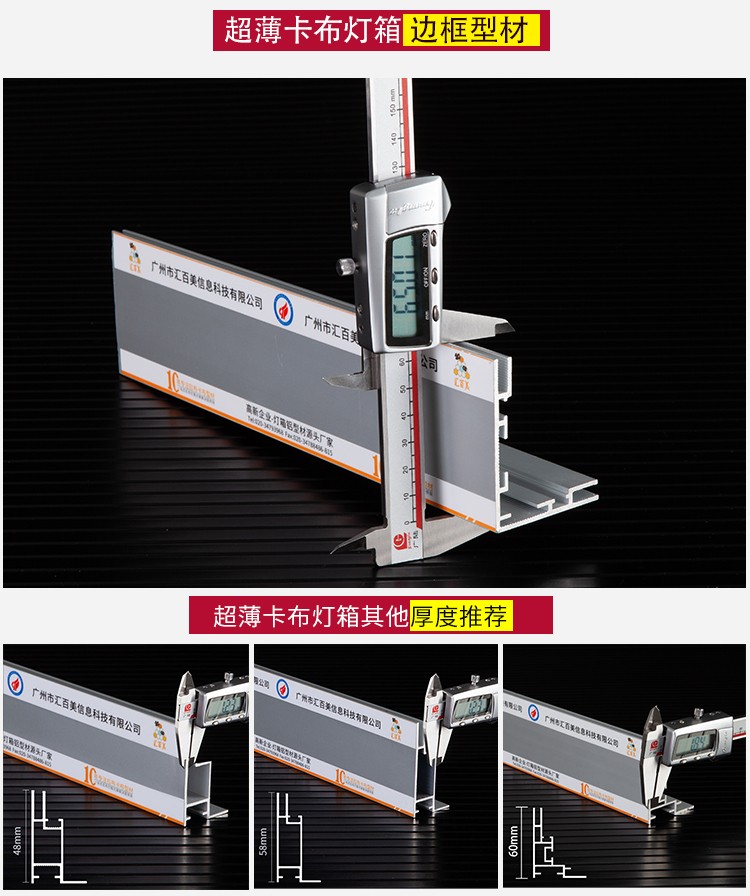 產(chǎn)品簡介:HBMC65-50超薄卡布燈箱,燈箱型材兩用設(shè)計(jì),可以采用65mm或50mm厚度,采用嵌入式換畫,畫面容易安裝且不易松脫,常用于服飾/奢侈品牌等店鋪的廣告宣傳,讓整個(gè)店鋪彰顯出高貴與奢華。...