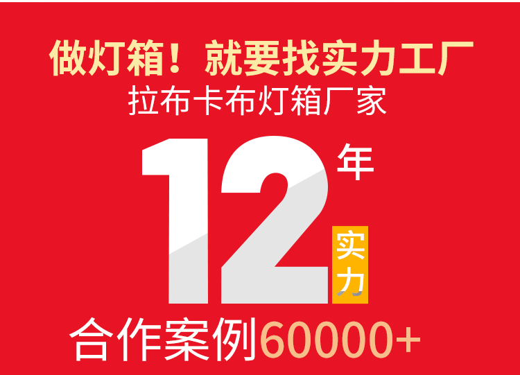 產(chǎn)品簡介:5分超薄卡布燈箱,采用升級款50mm卡布鋁型材,安裝更方便,采用漫反射LED燈搭配熱轉(zhuǎn)印畫面,將廣告畫面還原設(shè)計師最初的設(shè)計元素,讓消費(fèi)者過目不忘,從而達(dá)到真實的宣傳目的。...