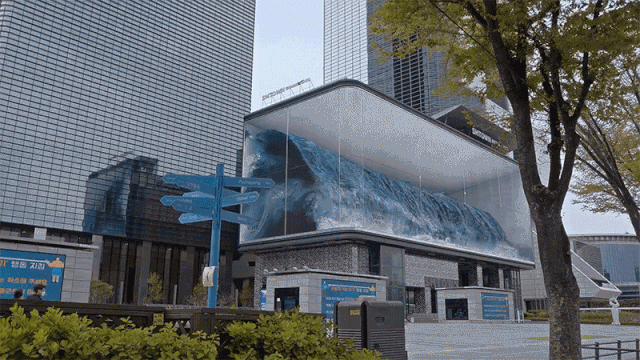 事實(shí)上,這是一個(gè)LED曲面屏的戶外裝置,來自三星的 Smart LED,通過技術(shù)模擬海浪達(dá)成的逼真效果。最近,小編也收集了一些創(chuàng)意戶外,在這里分享給大家。希望能帶給大家一些靈感~