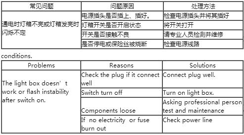 Environment--- Do not use the light box above temperature (over40℃ )and humidity (over80%) of the places.