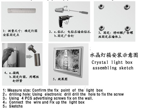 1.Conform the location of installation of light boxes, according to the actual situations to determine the installation’s methods.