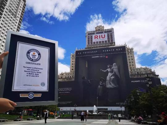 近日,在西班牙首都馬德里的西班牙大廈外墻上展示的一幅華為P20 Pro巨型廣告牌,獲得了世界最大廣告牌的吉尼斯世界紀(jì)錄。該廣告牌面積達(dá)5672.37平米,相當(dāng)于20個網(wǎng)球場,一舉刷新了最大的戶外廣告的吉尼斯世界紀(jì)錄。